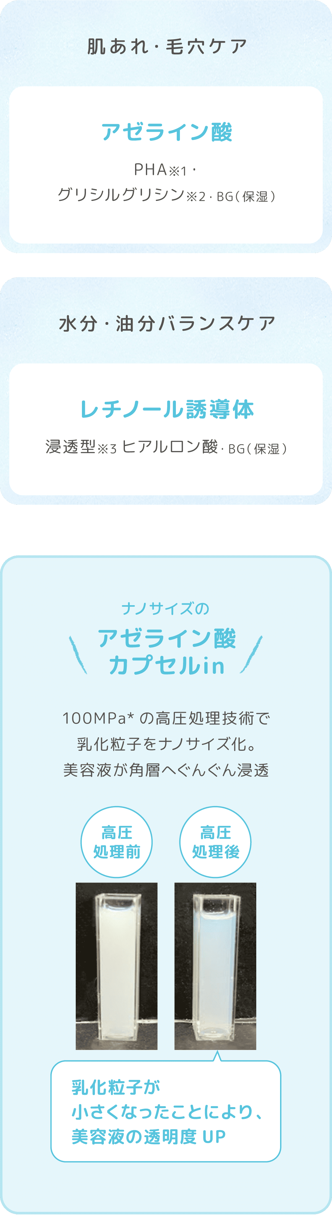 水分・油分のバランスをととのえ、クリアななめらか肌へ。