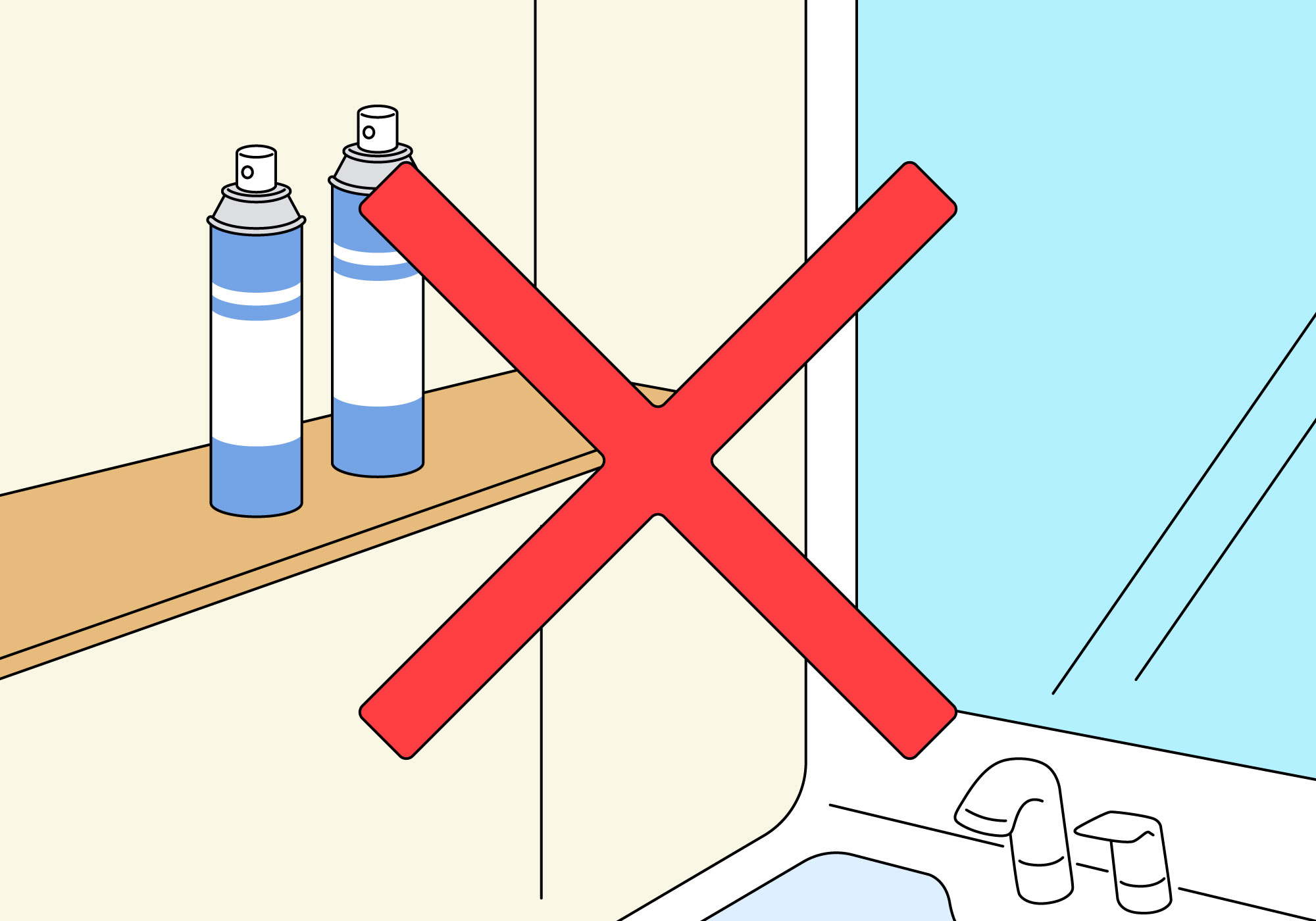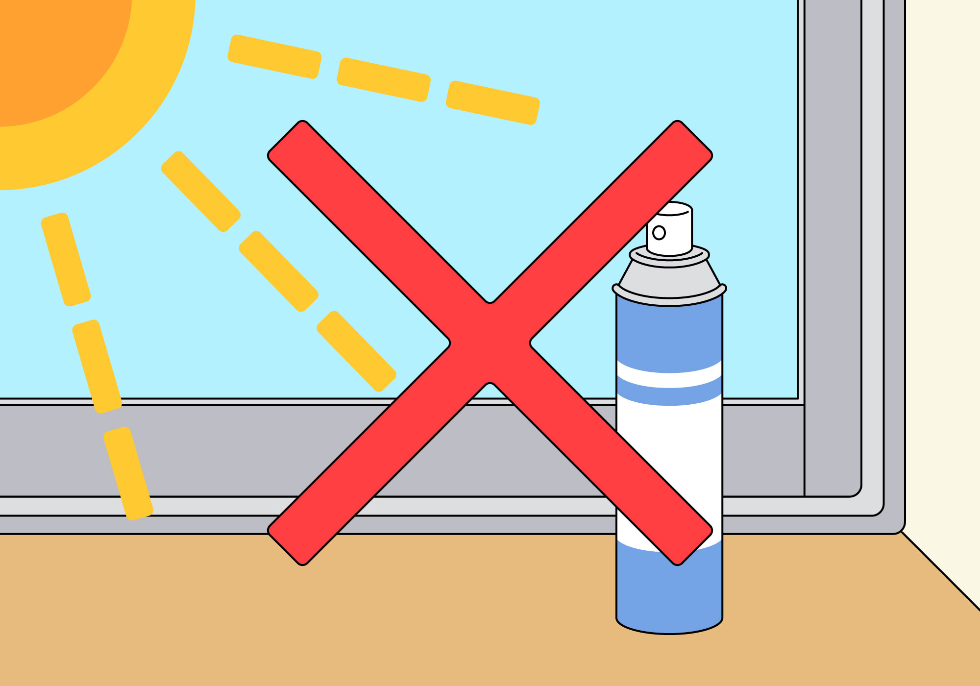 直射日光のあたる窓際や自動車内等は40℃以上になる場合があります。エアゾール缶を高温の場所に放置すると、 ガスの膨張や、破裂の原因となる可能性があります。