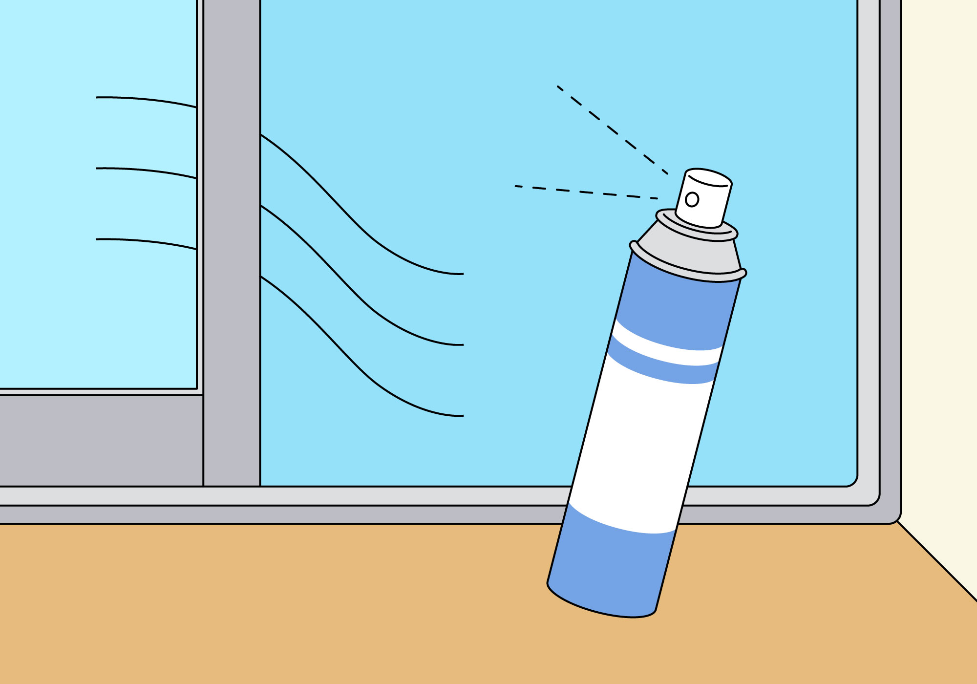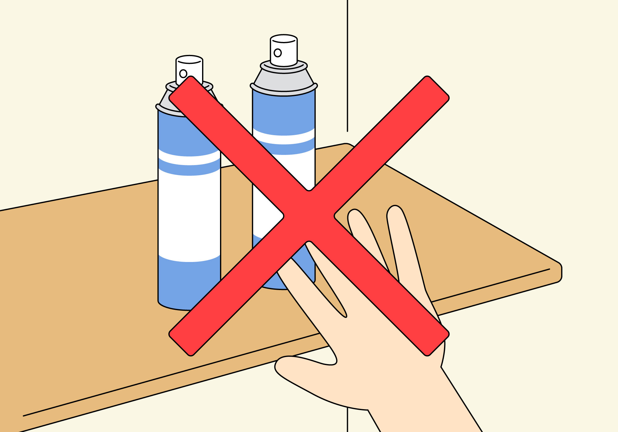 直射日光のあたる窓際や自動車内等は40℃以上になる場合があります。エアゾール缶を高温の場所に放置すると、 ガスの膨張や、破裂の原因となる可能性があります。